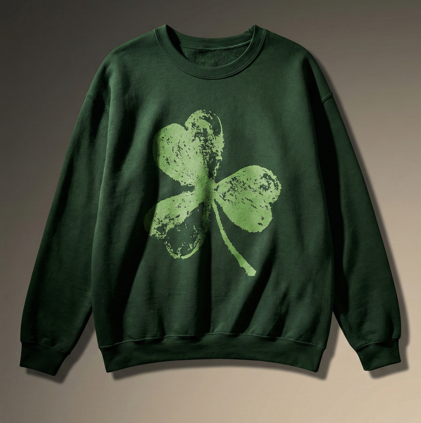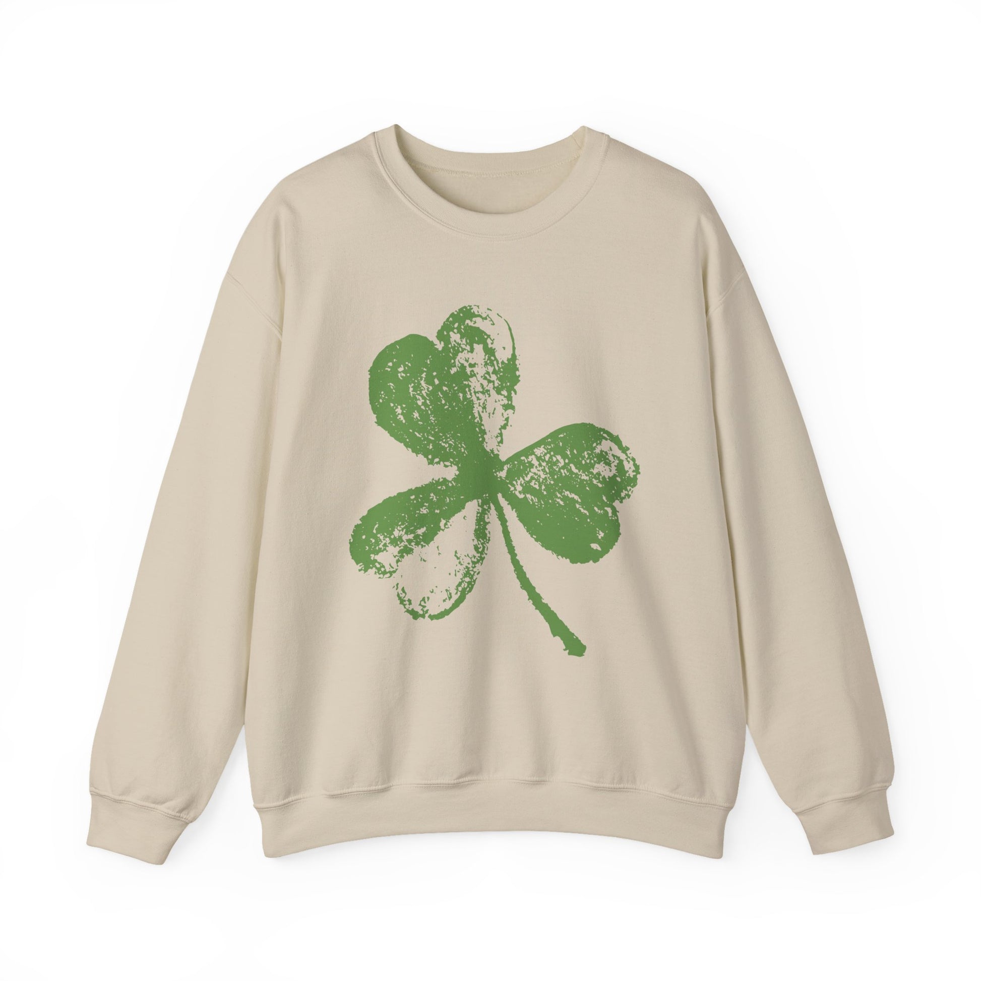Set on a deep green sweatshirt base, the textured clover artwork creates a vintage-inspired look that feels both modern and timeless. Whether you’re celebrating St. Patrick’s Day, embracing lucky charm aesthetics, or simply love clean graphic designs, this pullover makes a confident statement without being overcomplicated.
