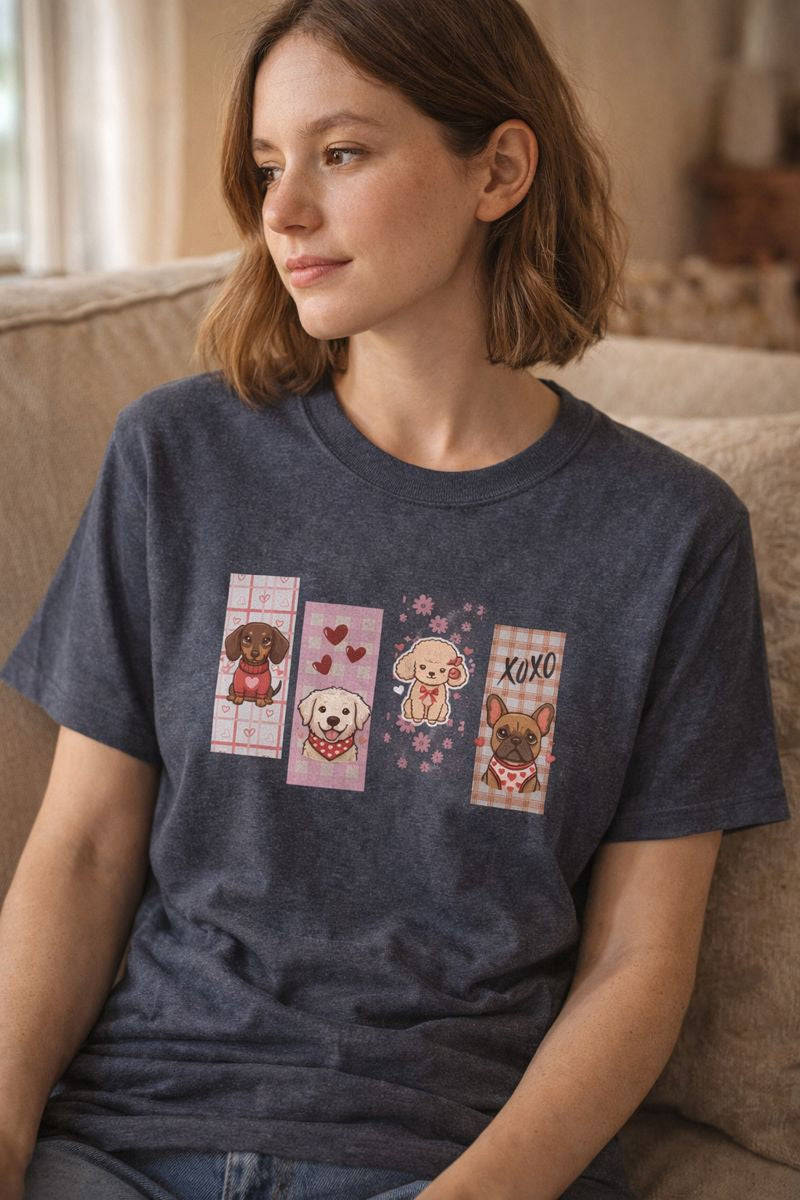 This t-shirt is made for dog lovers, Valentine’s Day enthusiasts, and anyone who loves cute, feel-good fashion. Ideal for casual outings, lounging, gifting, or adding a playful touch to everyday looks. It stands out as a charming seasonal piece that feels joyful without being over-the-top.